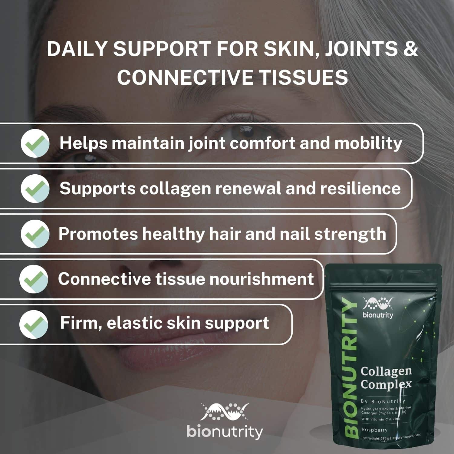 Van de bindweefsels onder je huid tot de gewrichten die elke beweging ondersteunen, Collageen Complex vertelt een verhaal van structuur, veerkracht en vernieuwing.